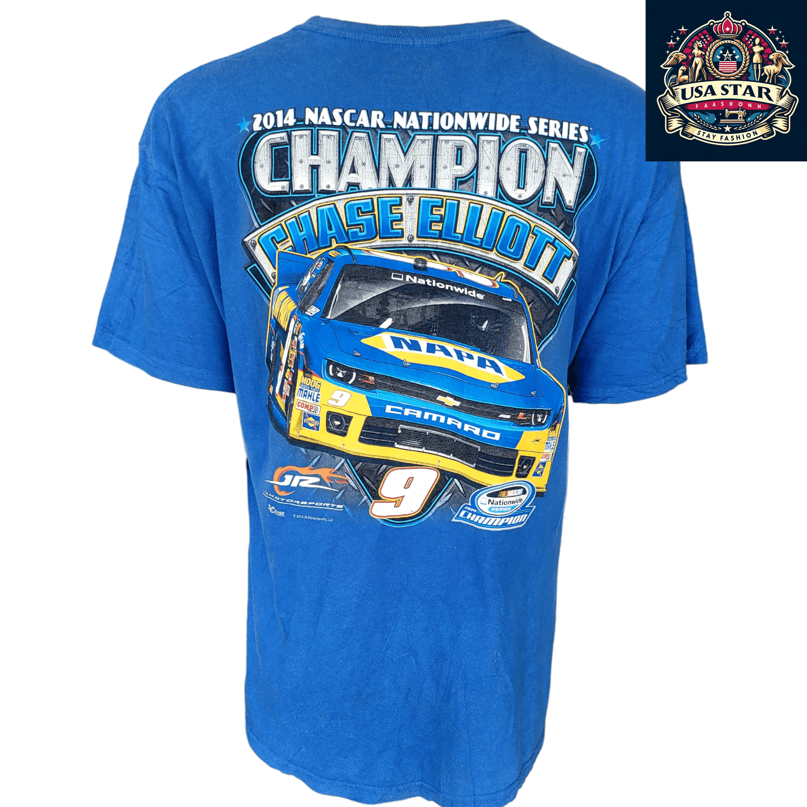 Celebrate the thrilling world of NASCAR with the Chase Authentics NASCAR Chase Elliott 2014 Nationwide Champion T-Shirt in striking black. This exquisite piece of apparel not only showcases your support for one of the sport’s brightest talents, Chase Elliott, but also represents his remarkable 2014 Nationwide Championship victory. Ideal for both everyday wear and special racing events, this NASCAR Chase Elliott t-shirt makes a bold statement that every fan will appreciate.